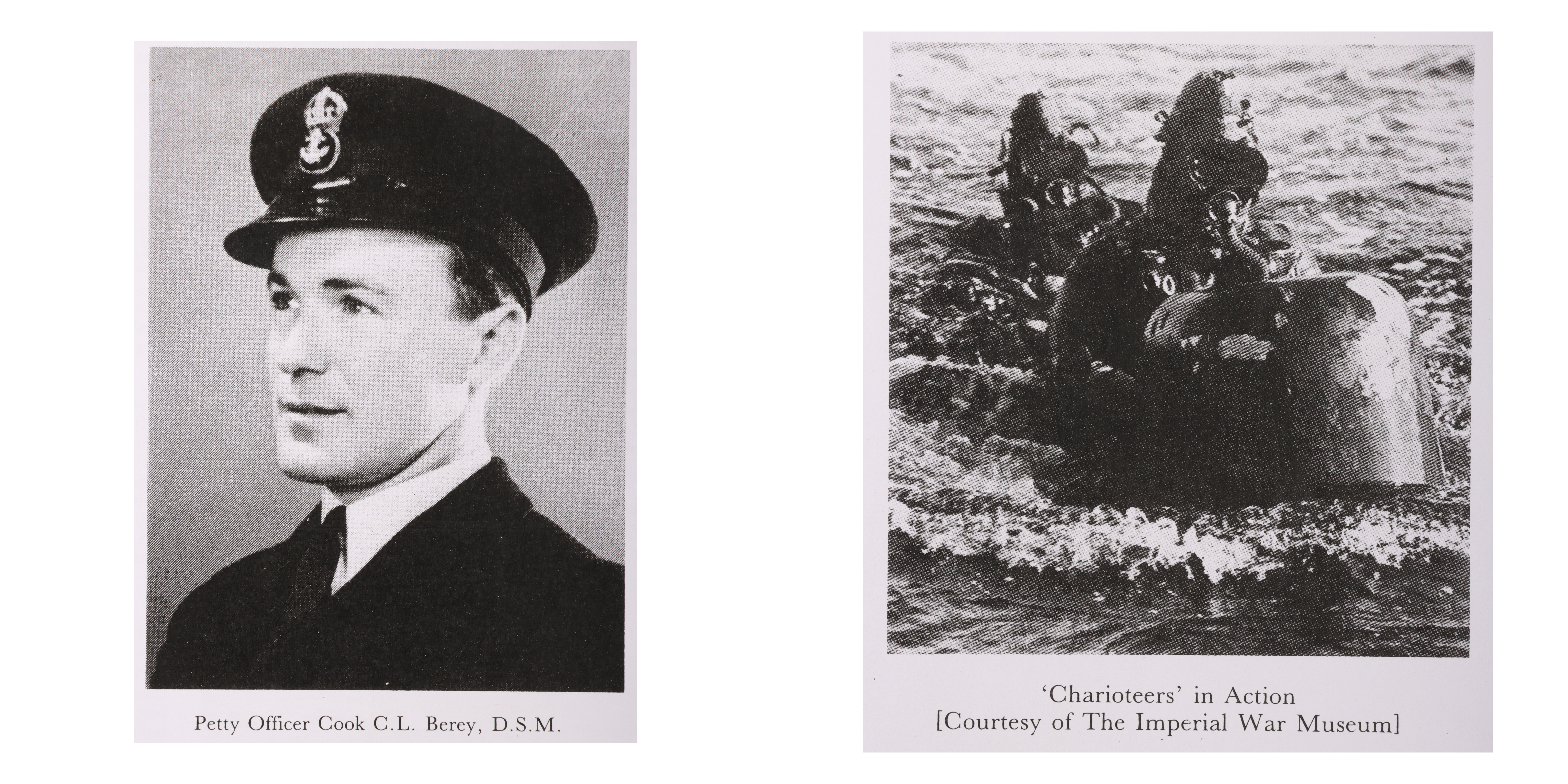 Berey served in the Royal Navy as a Charioteer, a diver who rode a two-man 22ft ‘Human Torpedo’ chariot. Described as a man who was “mentally and physically hard”, Berey was well-suited to the dangerous life of a Charioteer. Indeed, Berey embraced his role, “his life was the sea and the Navy”.
