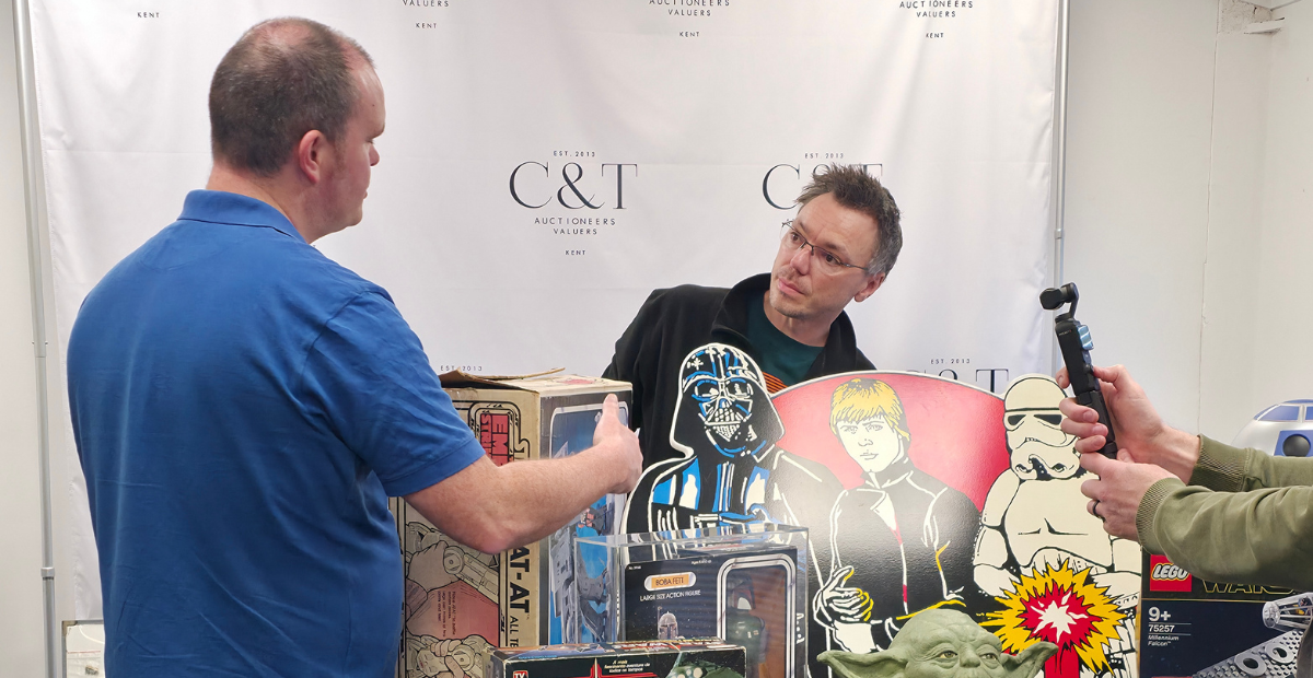 We were buzzing to be visited by Martyn and Adam from A Long & Long Time Ago. The guys got a sneak peak a whole range of Star Wars lots from the auction while chatting with specialist Rob. You can see what they got up to on their YouTube, video available here!